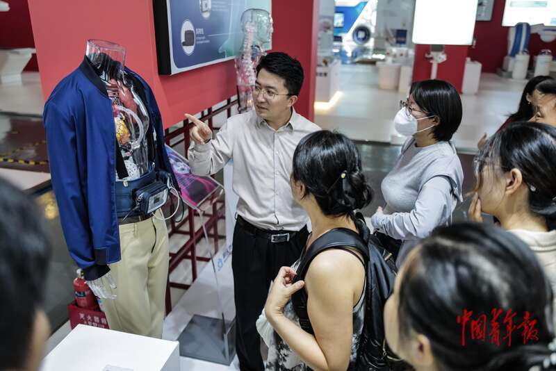9月24日,海南博鳌乐城国际医疗旅游先行区,媒体记者在参观新型植入式左心室辅助系统。中青报·中青网记者 赵迪/摄
